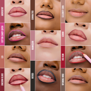 | Velour Lip Liner (Shade) | Androgyny, Celebrity Skin, Cotton Candy Queen, Dominatrix, Gemini, Leo, Mannequin, Redrum, Unicorn Blood, Weirdo, Wyoming Wind |